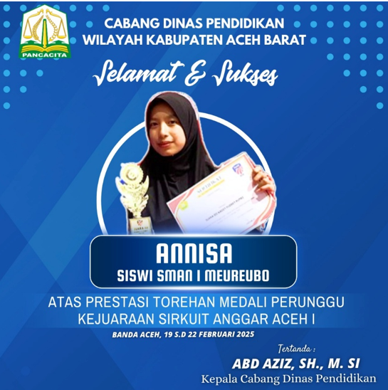Annysa Fitri Permata Salah Satu siswa SMAN 1 Meureubo Meraih Medali Perunggu Pada Pertandingan Kejuaraan Anggar yang dilaksanakan di Sirkuit Anggar Aceh-1 Banda Aceh, Pada Tanggal 19 s/d 23 Februari 2025.